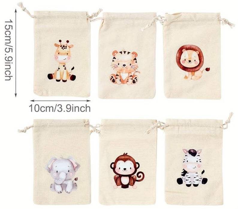 Diese Geschenkbeutel mit Tiermuster sind perfekt für Kindergeburtstage. Mit Dschungeltieren bedruckt schaffen Sie eine fröhliche und verspielte Atmosphäre und sorgen für Begeisterung bei kleinen Empfängern. Der ideale Begleiter für Geburtstage, Weihnachten oder andere Anlässe.