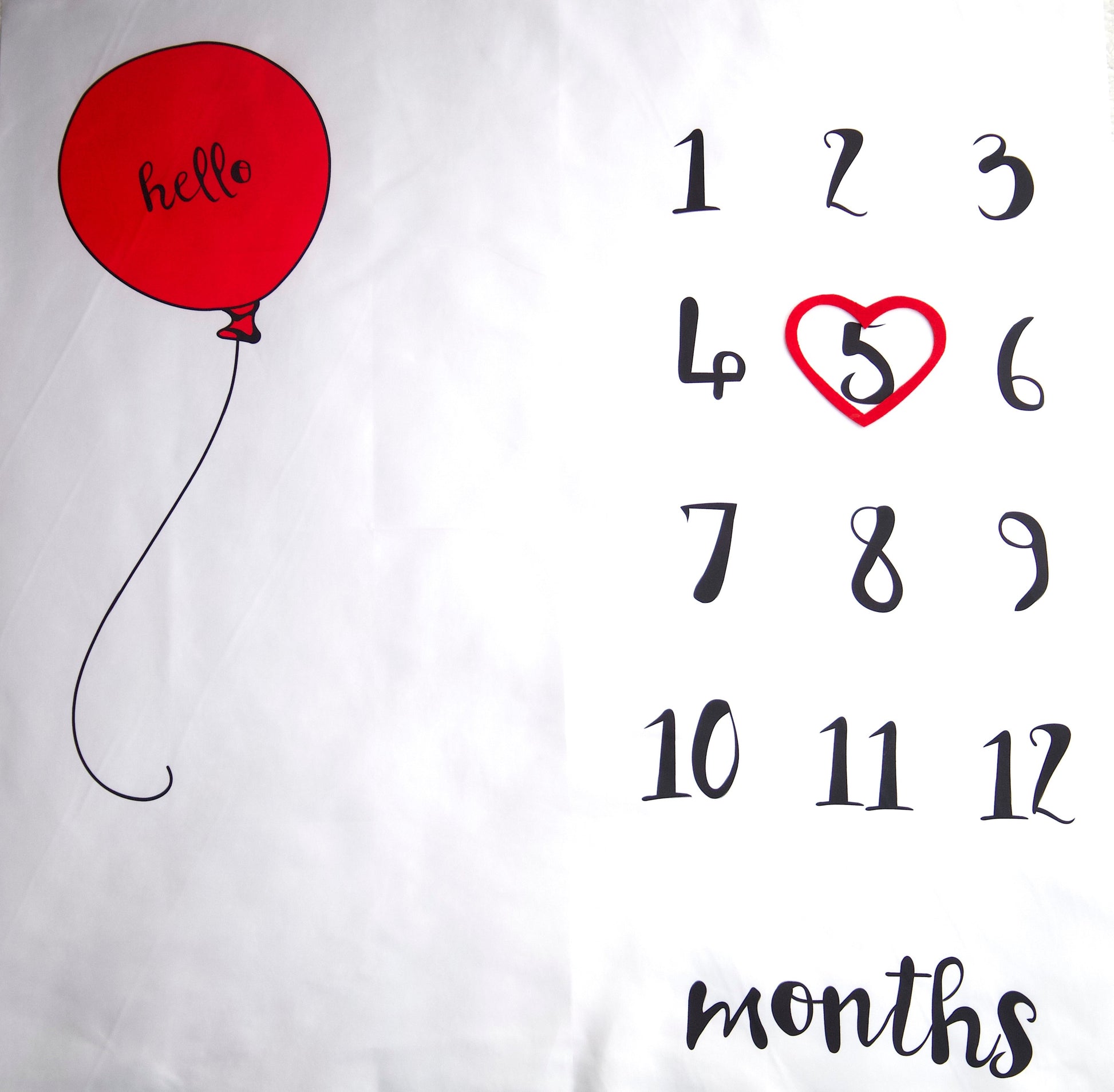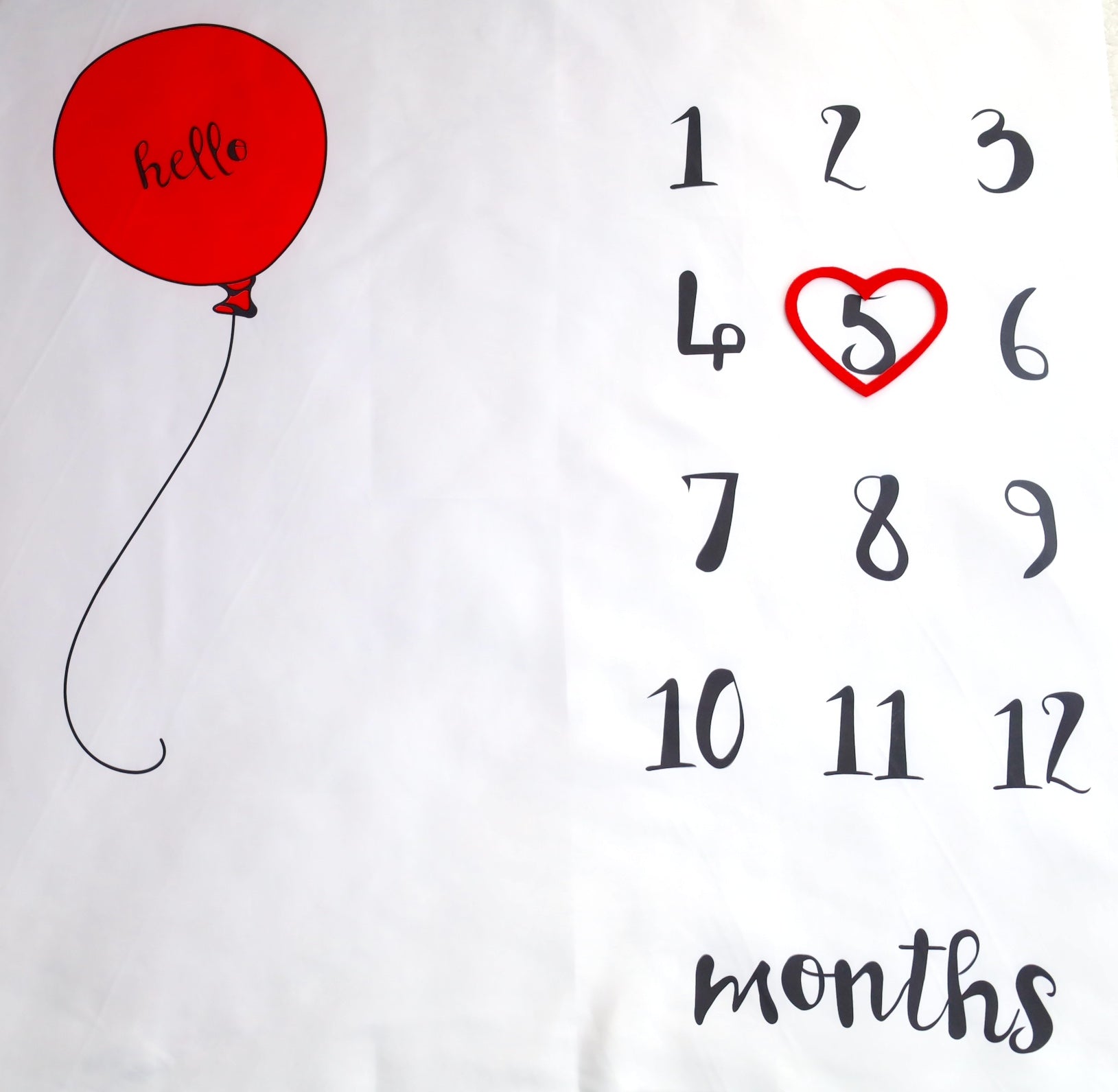 - Ballon Set: Meilensteintuch und ein rotes Herz zum Anzeigen der Monate