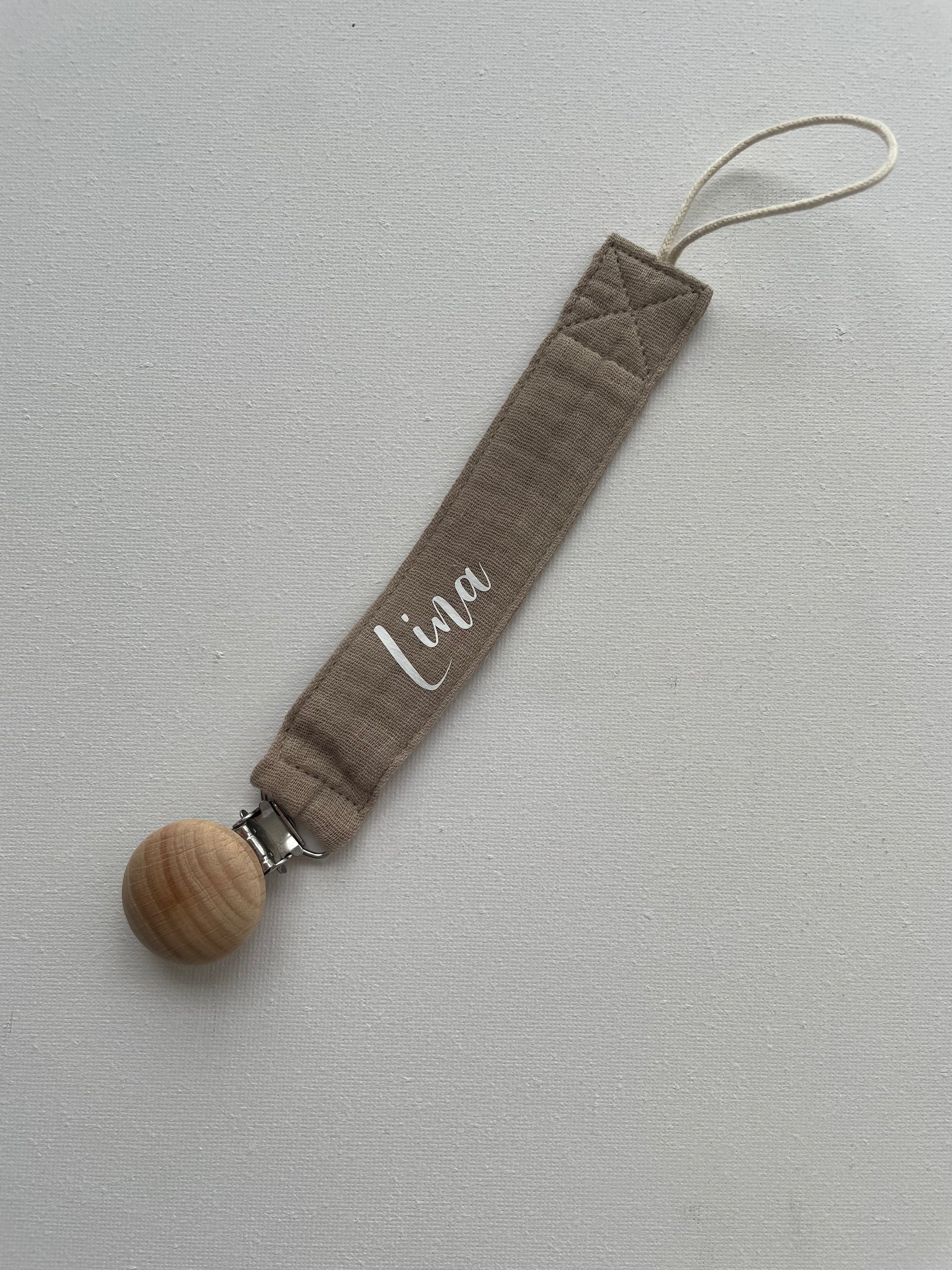 Das Schnullerband besteht aus weichem Musselin, was eine ideale Wahl für Babys ist. Mit diesem Band bleibt der Schnuller immer sicher und griffbereit, was Eltern Zeit und Mühe spart. Ein unverzichtbares Accessoire für jeden Babyhaushalt.